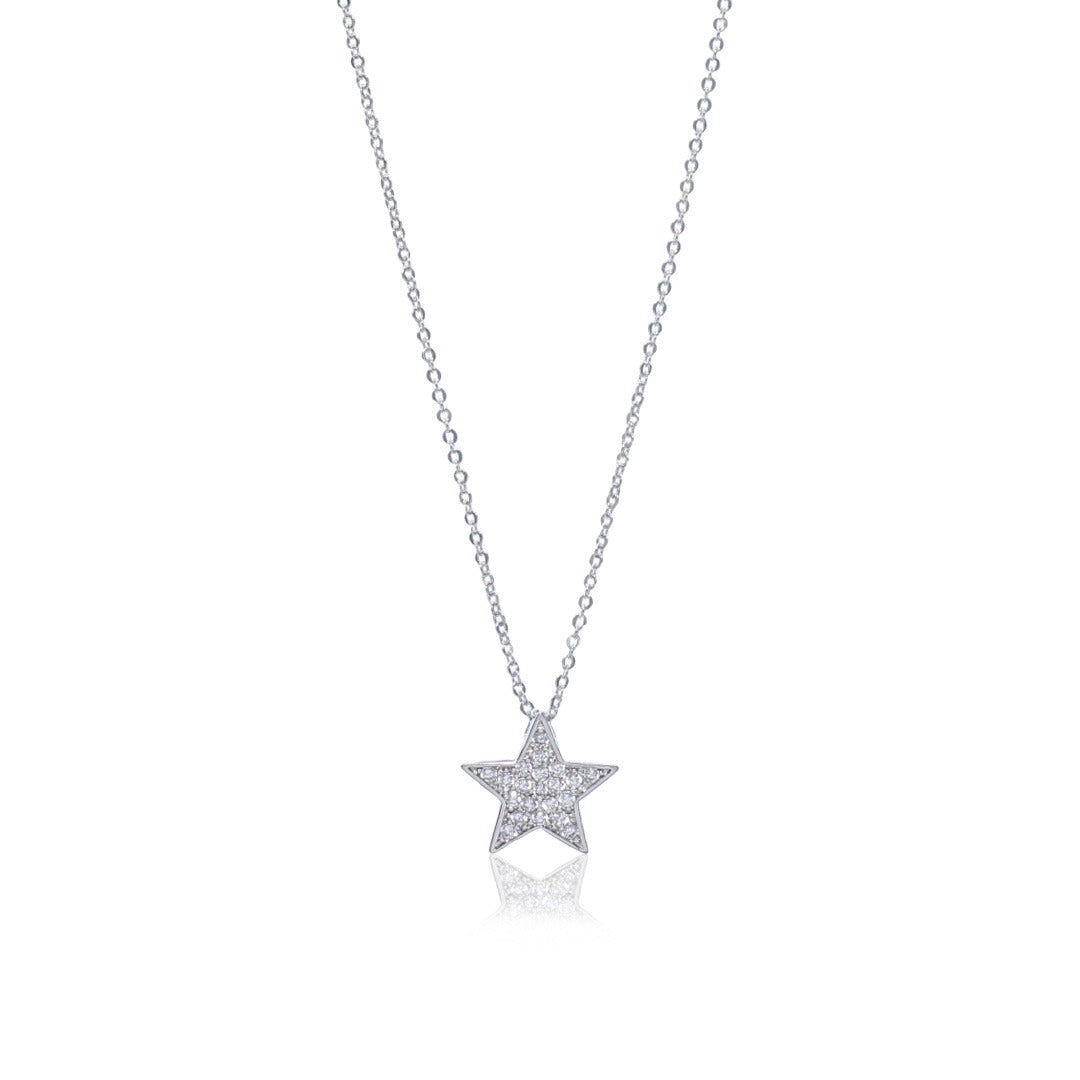 Elevate your jewelry collection with this refined silver-tone necklace, featuring a delicate pave star charm that catches light beautifully. The intricate pave detailing adds sophisticated sparkle, while the lightweight design ensures comfortable all-day wear. Perfect for layering or wearing solo, this versatile piece transitions seamlessly from casual to formal occasions. The polished silver-tone finish maintains its lustrous appeal, making it an enduring staple in any jewelry wardrobe.