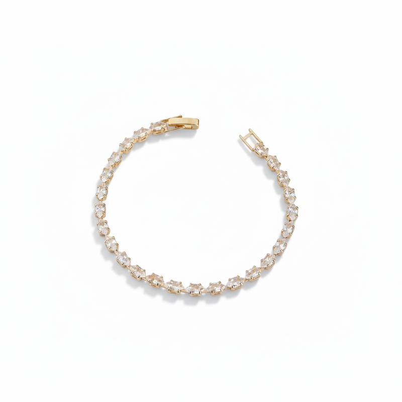 Elevate your accessory collection with this expertly crafted gold-tone link bracelet, adorned with brilliant cubic zirconia stones. Each link catches light beautifully, delivering a sophisticated shimmer without the high price of precious gems. Its durable construction ensures lasting wear, making it an ideal complement for both everyday elegance and special occasions. This bracelet offers a refined blend of classic design and contemporary sparkle, perfect for those seeking a luxurious look with expert precision.