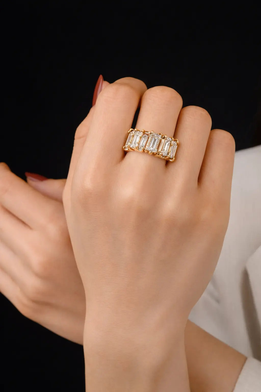 With proper care, the gold-tone finish remains intact. Avoid contact with water, perfume, and chemicals to preserve its shine.